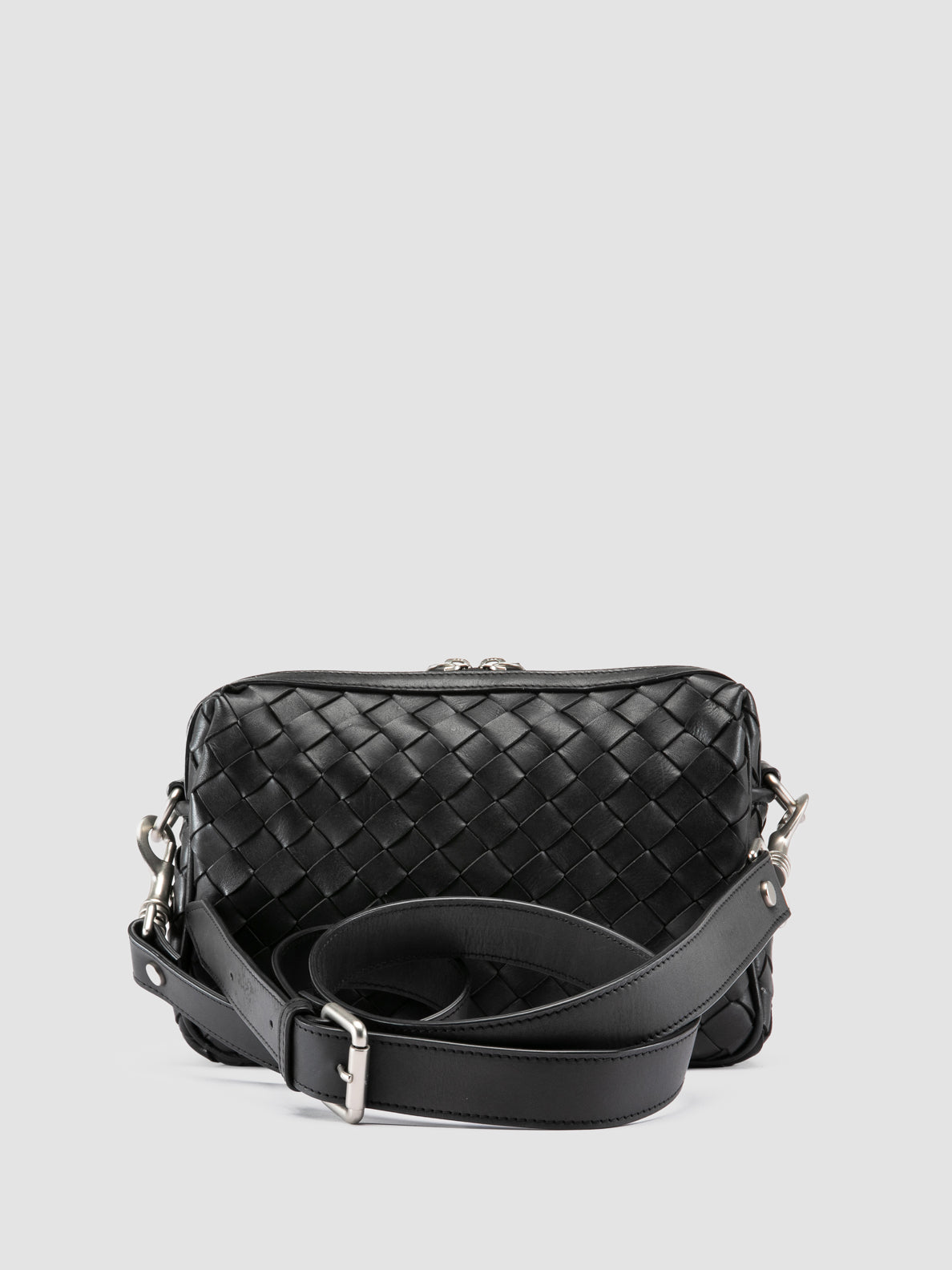 L'astuccio Armor 023 è interamente intrecciato a mano in pelle nera e dotato di chiusura superiore a doppia zip e tasca frontale con zip. L'interno presenta scomparti aggiuntivi, mentre il cinturino da polso staccabile e la tracolla regolabile consentono un utilizzo versatile. CODICE: ARMOR/023 GAMBLING NERO