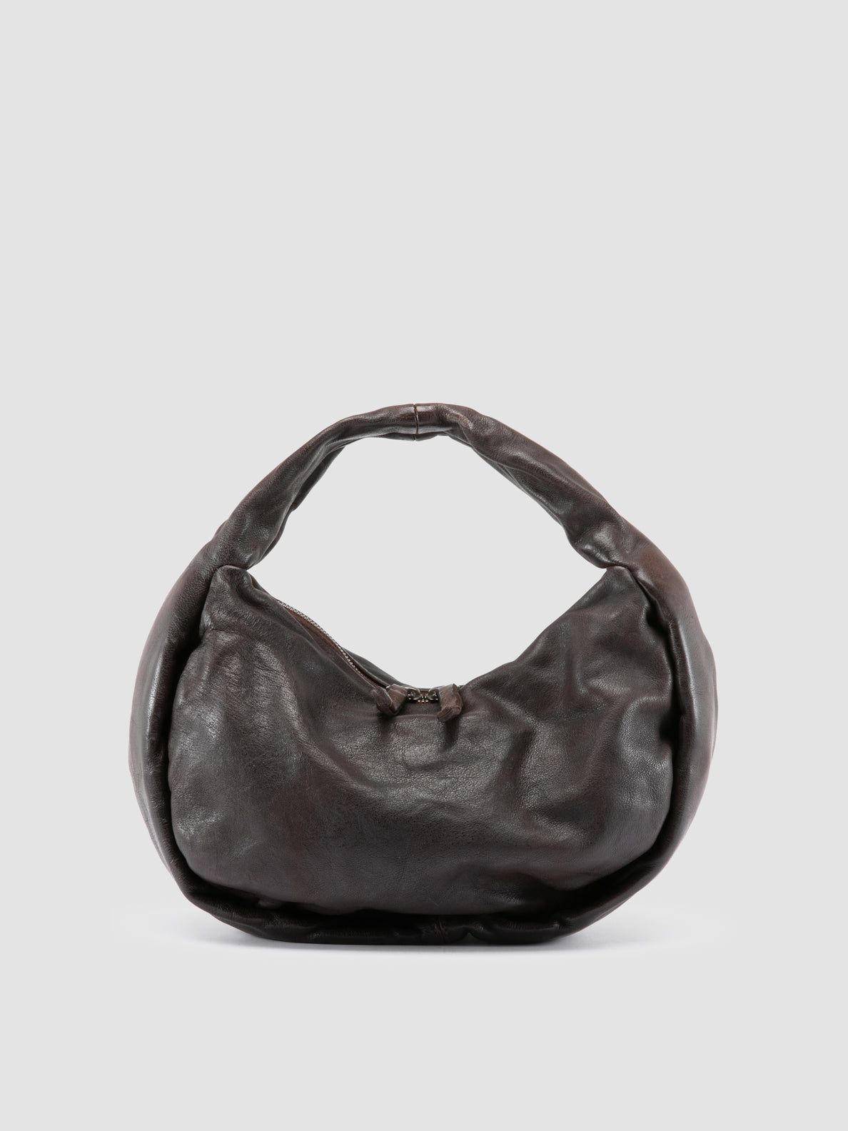 La borsa Bolina 44 in pelle nera presenta una silhouette intrecciata a mano impreziosita da un manico spesso che dona al design un aspetto scultoreo. L'interno in pelle morbida, spazioso e foderato, è chiuso da una doppia zip. CODICE: BOLINA/044 IGNIS T. FONDUE