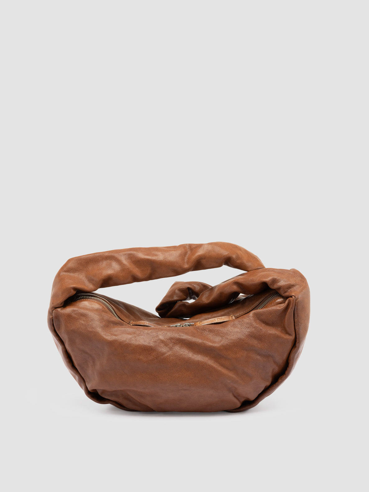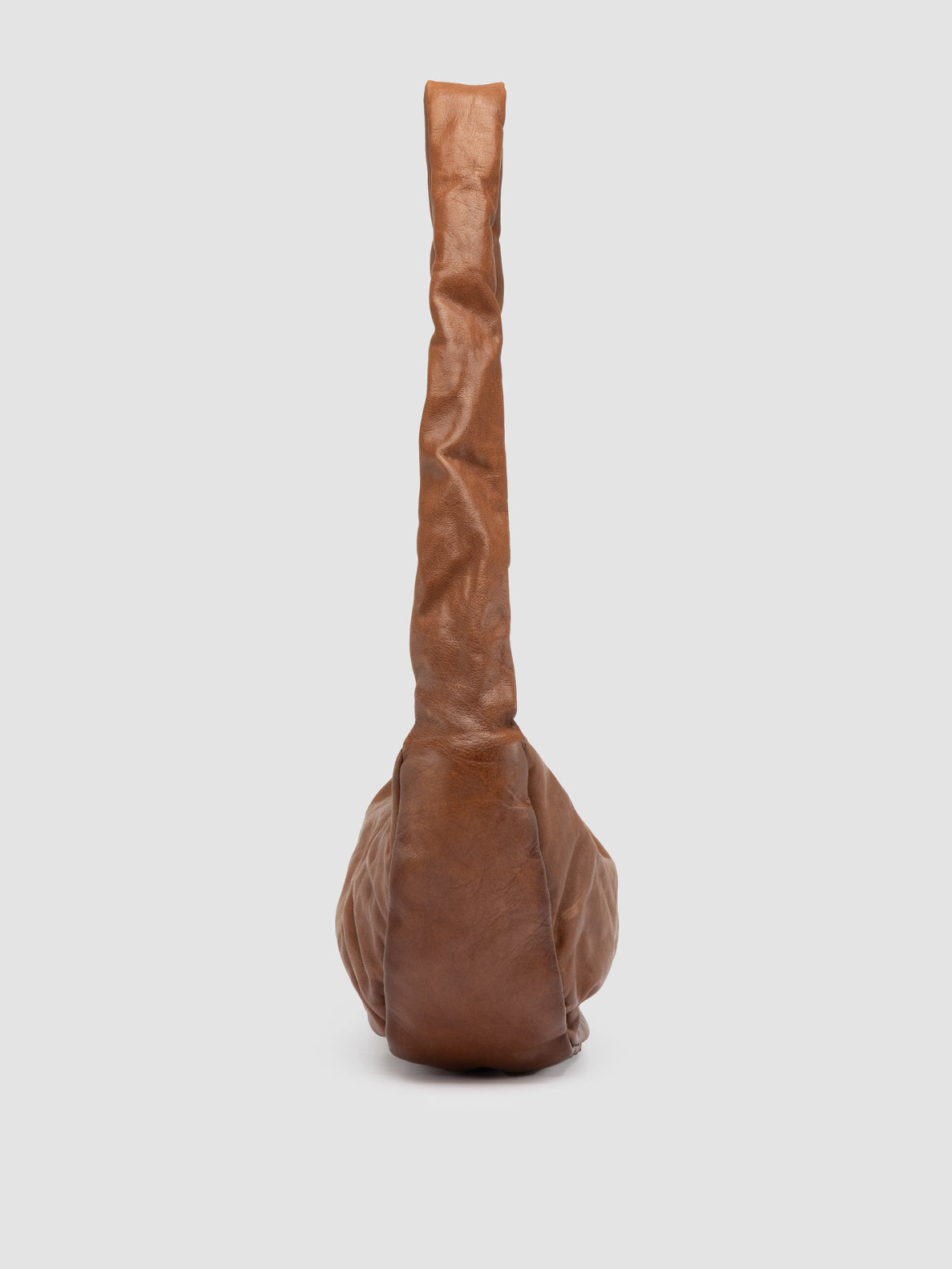 La borsa a tracolla Bolina 046 in pelle marrone presenta una silhouette rilassata con una tracolla drappeggiata. Il design, all'insegna del minimalismo e della praticità, svela un interno capiente, protetto da una chiusura a doppia zip. CODICE: BOLINA/046 IGNIS T. V.SUGHERO