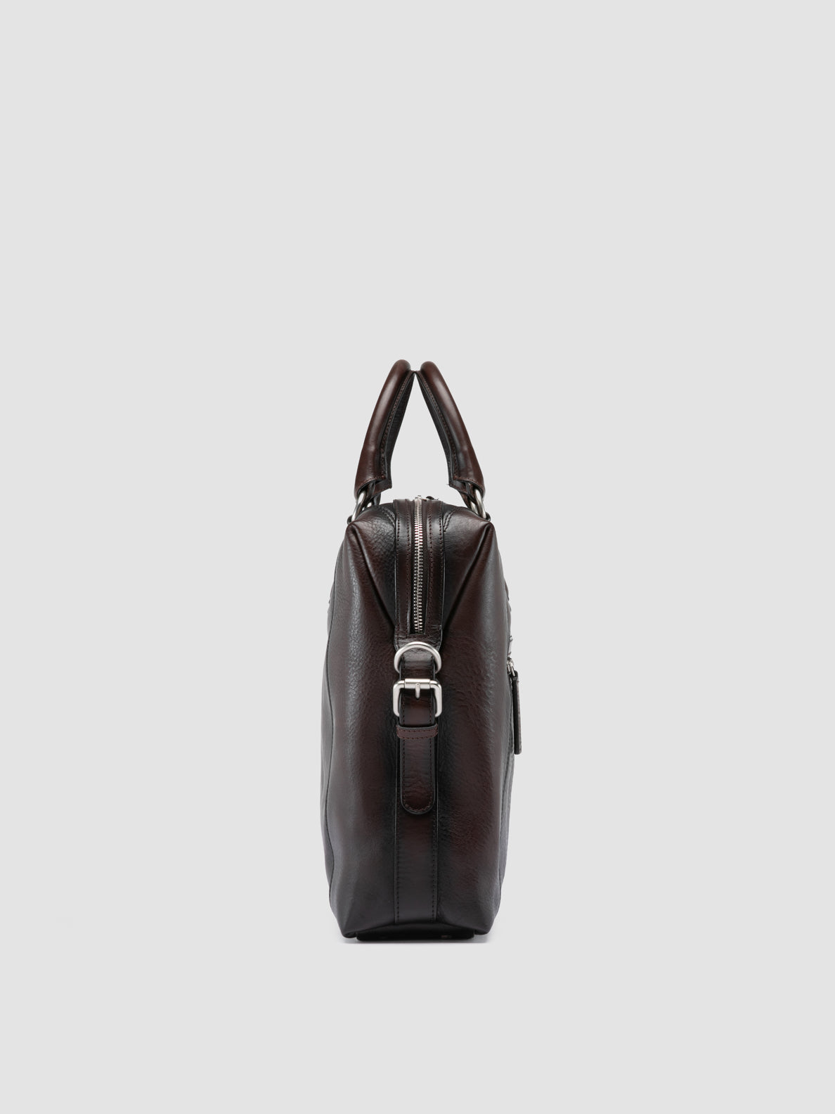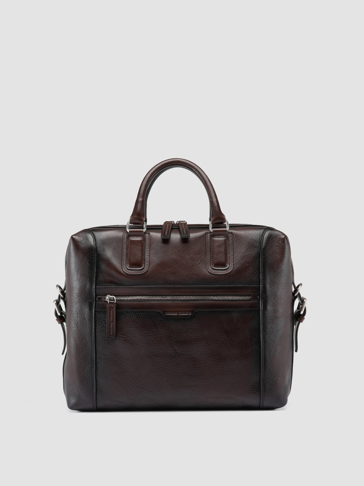 Handcrafted from airbrushed dark brown leather, the Jules 007 briefcase features two handles and a detachable strap. The front pocket offers quick access to essentials, while the suede interior is organised with zipped and open compartments.