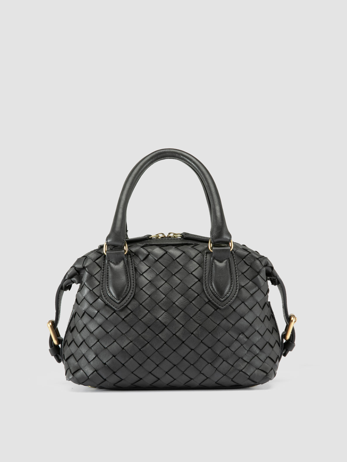 Realizzata in pelle nera intrecciata, la borsa Aura 002 si presenta con una forma compatta ma spaziosa, con manici superiori e una tracolla removibile. La chiusura a zip offre una custodia sicura agli effetti essenziali, mentre l'interno foderato in tessuto include pratiche tasche. CODICE: AURA/002 BREED NERO