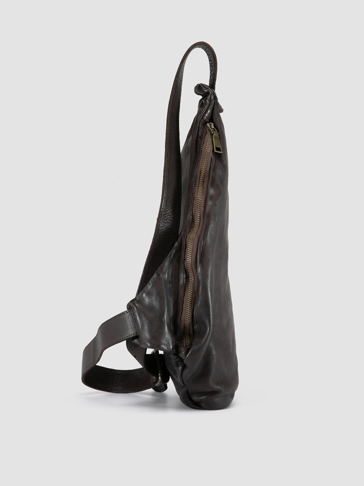 Handcrafted by our skilled artisans from soft and fine dark brown leather our Helmet one-shoulder waistpack combines contemporary design and exclusive craftsmanship style. Practical and smart it features an adjustable shoulder strap zippered main compartment embossed lettering logo leather front label and gold-tone metal hardware. Composizione : 100% Pelle Dimensioni : 18W x 44H x 4D cm Realizzato in : Handcrafted in Italy Codice: HELMET/30 IGNIS T. EBANO Tags Accessori artigianali , Uomo , Accessori in pelle Uomo , Borse in pelle Uomo ,