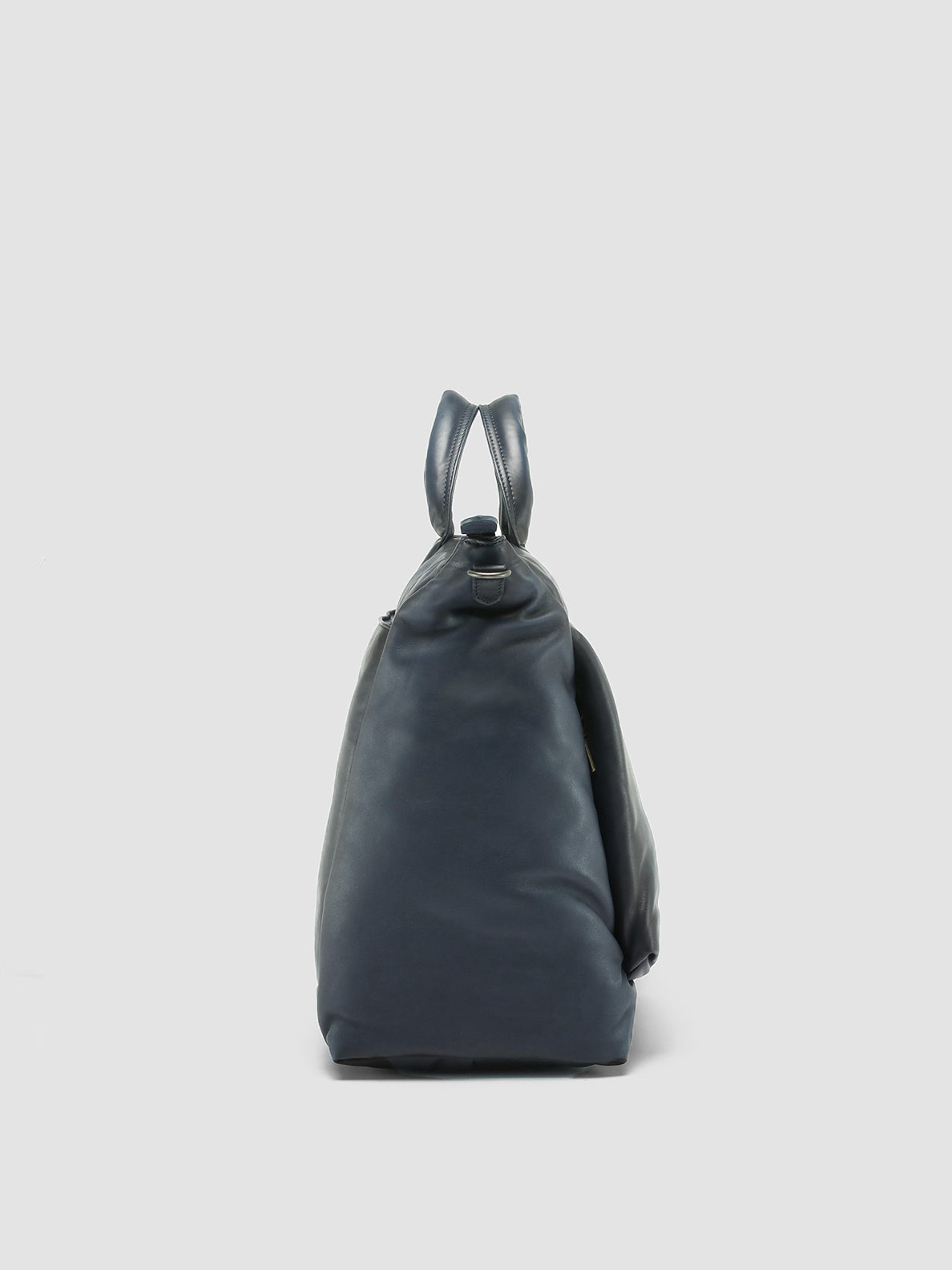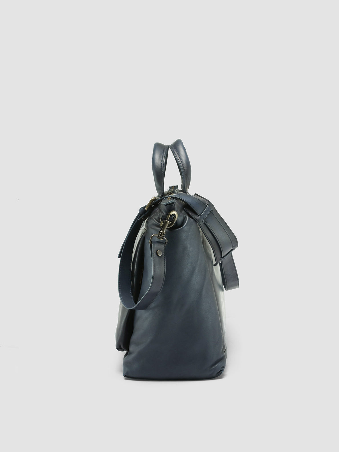 Practical and versatile our Helmet duffel bag is expertly handcrafted from supple blue airbrushed leather and is perfect for carrying everything you need for a business trip or a weekend away. It features two padded top handles an adjustable and detachable shoulder strap two way zipped main compartment exterior zip pockets canvas lining two roomy interior pockets and antiqued gold-tone metal hardware.