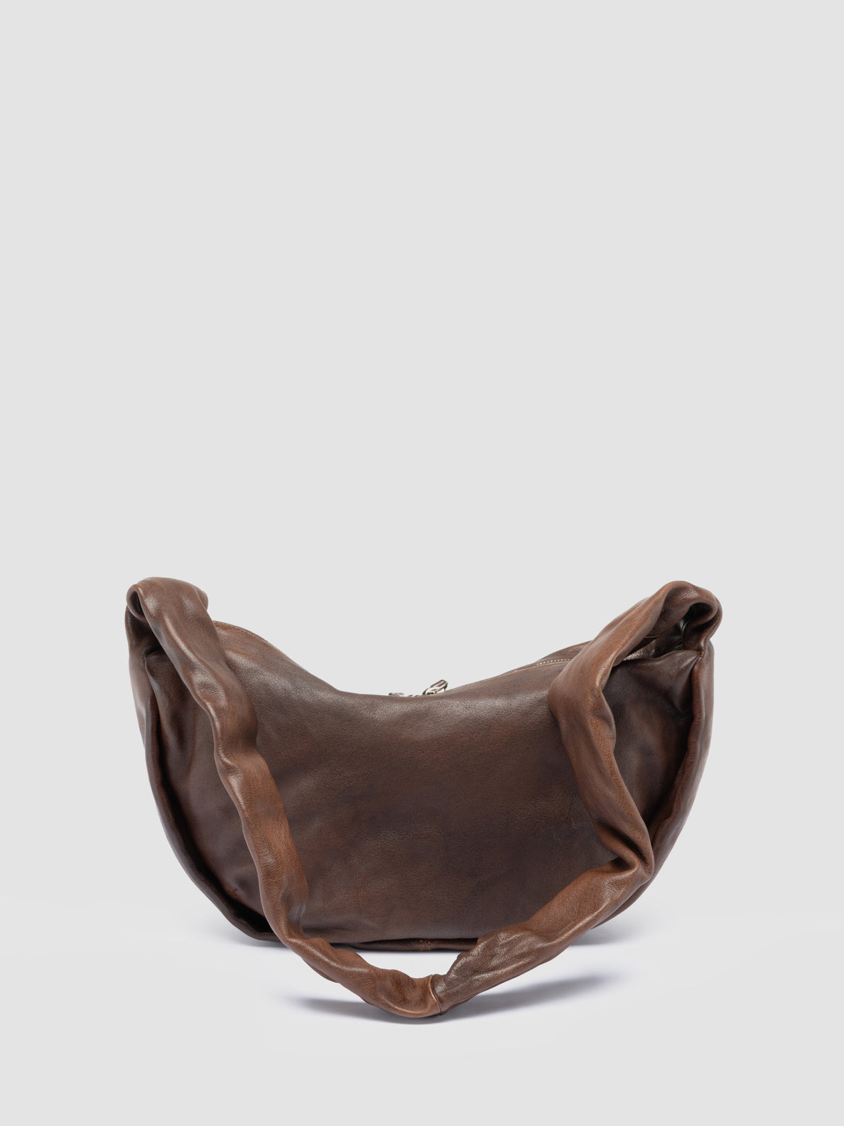 La borsa crossbody Bolina 046 in pelle marrone propone una forma morbida con una tracolla drappeggiata. Con il capiente interno e la chiusura a doppia zip, il modello pone l'accento sul minimalismo e sulla funzionalità. CODICE: BOLINA/046 IGNIS T. CIGAR