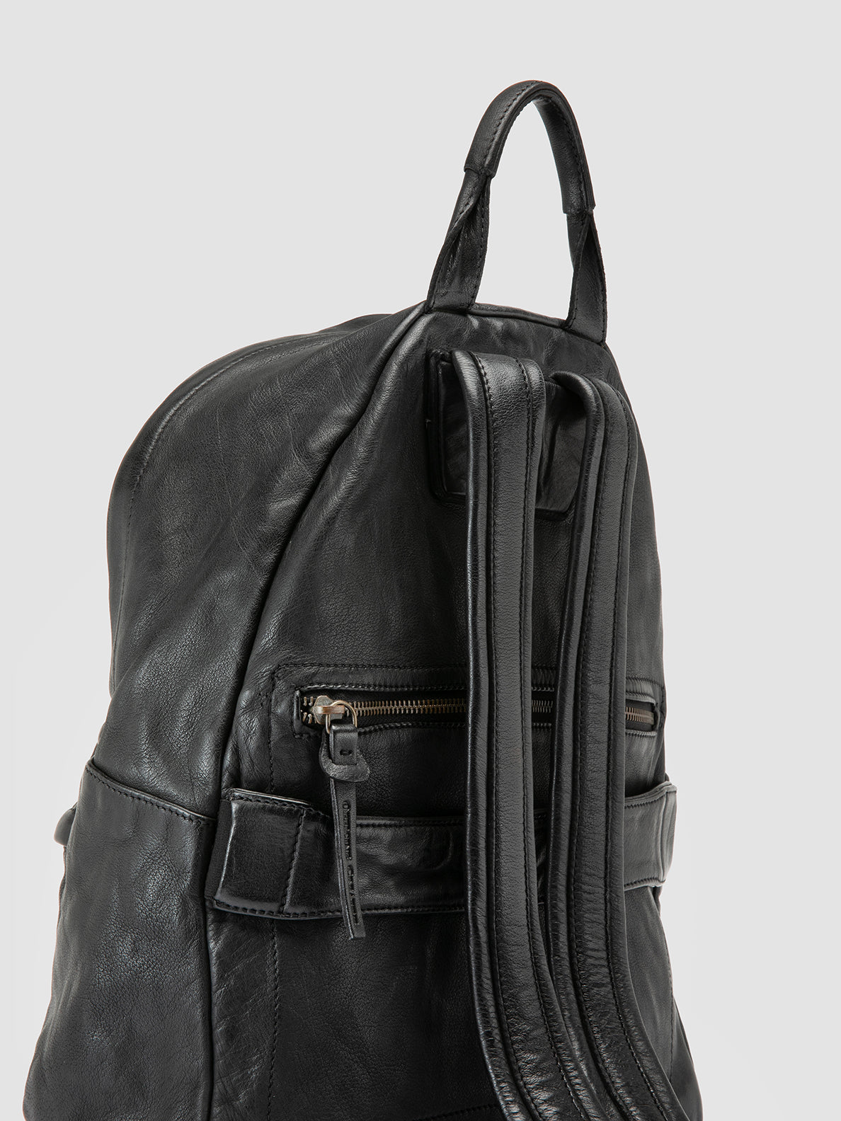 The OC Pack backpack is a testament to Italian craftsmanship. Made from premium black leather to accommodate a dynamic lifestyle, it offers ample space within a main compartment secured with a two-way zip. Equipped with a top handle and adjustable shoulder straps, it offers additional storage thanks to a sleek, flat zip pocket on the back.