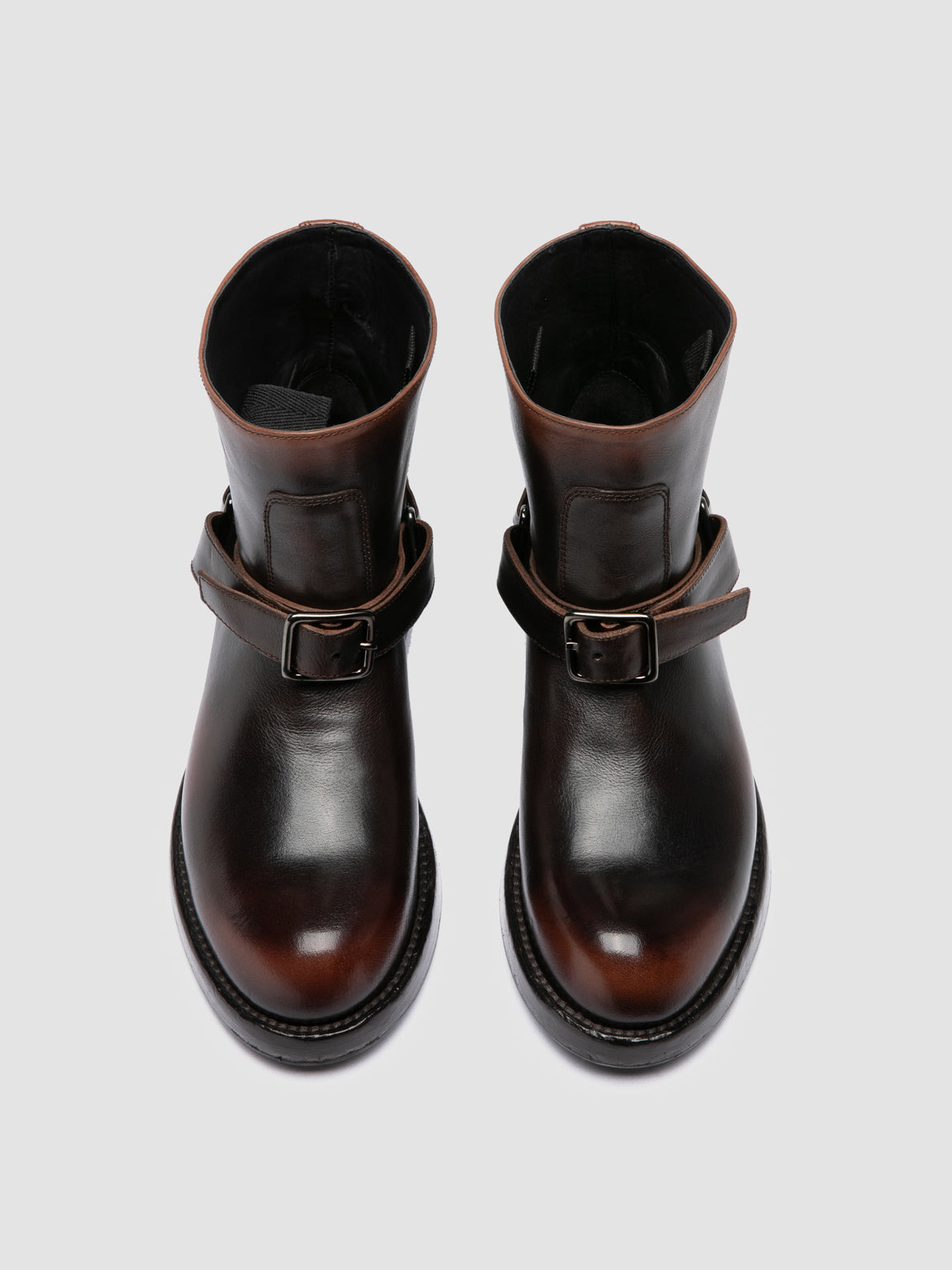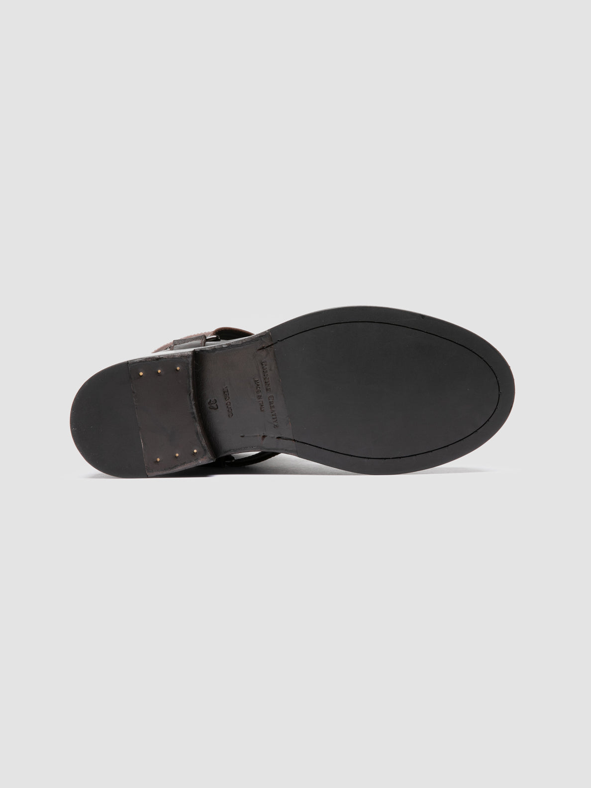 Gli stivali Beryl 009 propongono una nuova definizione per il classico modello pull-on con una preziosa pelle marrone e una finitura aerografata. Il gioco di cinturini con fibbia metallica aggiunge una nota grintosa, mentre la suola in cuoio monoblocco con iniezioni in gomma assicura aderenza. CODICE: BERYL/009 RUBOFF BUFALO V. MARRONE/T.MORO 25