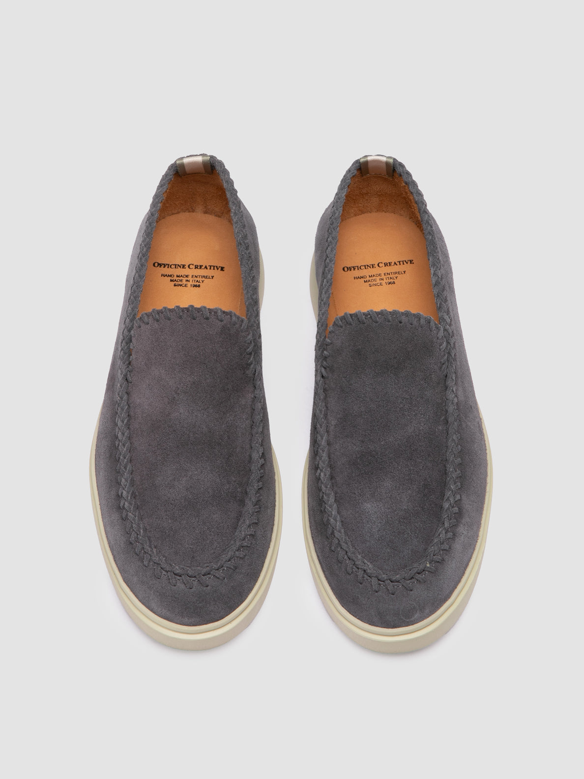 The Bones 104 Blue loafers offer a refined slip-on design with a focus on understated elegance. Handmade from suede, they feature delicate stitching that enhances the sleek silhouette and an ultra-light EVA sole.