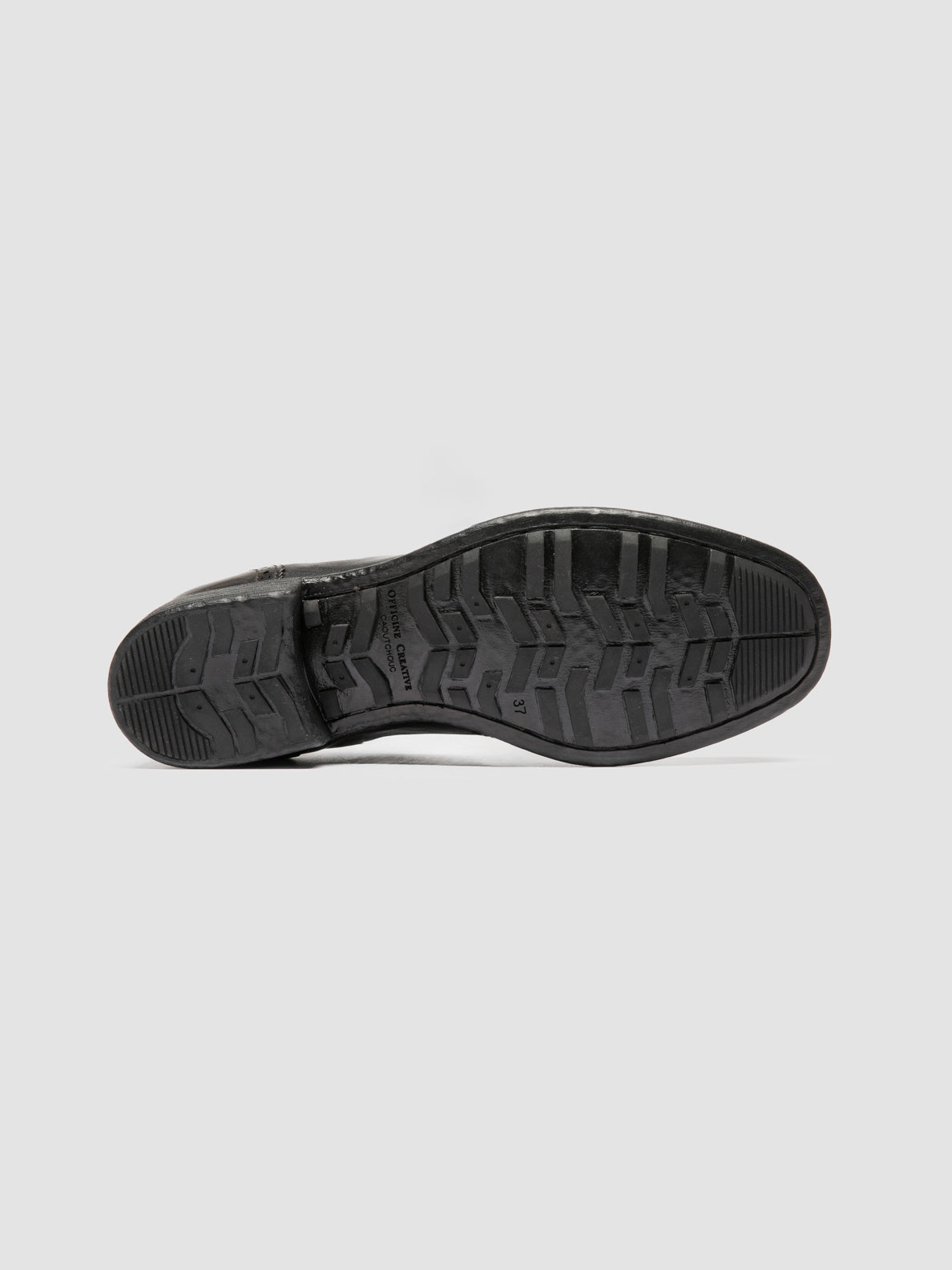 Sofisticata rivisitazione di un modello classico, le oxford Calixte 084 sono realizzate a mano in pelle nera con effetto aerografato. La speciale allacciatura aperta sul davanti, la lavorazione brogue e la suola in gomma naturale coniugano ispirazione rétro e moderna artigianalità. CODICE: CALIXTE/084 PATINA IGNIS T. OLIVE/SUPERNERO