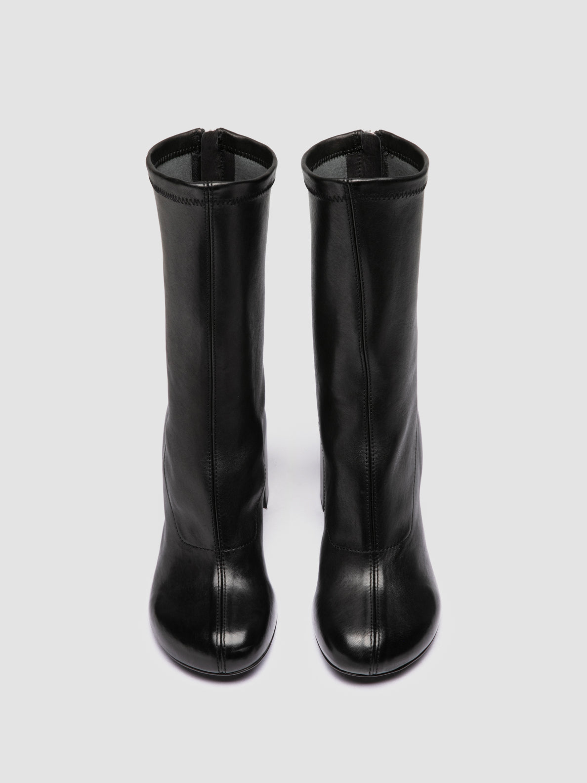 Handcrafted in Italy from soft black leather, the Esther 003 boots stand out for the sculpted silhouette. The high shaft, central seam and back zip create a close, elongated fit, while the inverted heel ensures effortless style.