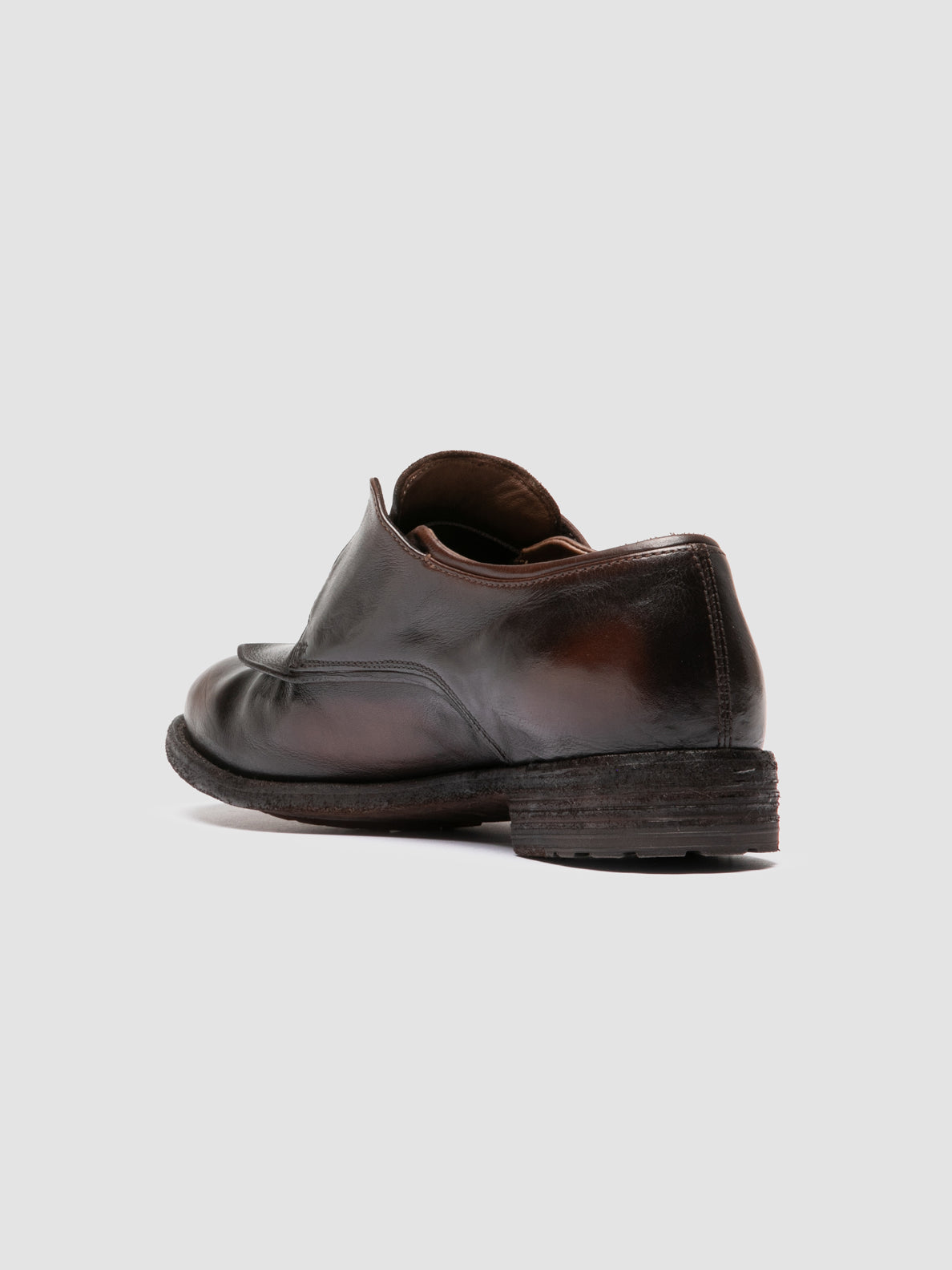 Realizzate a mano in Italia, le derby Lexikon 159 coniugano la qualità della pelle marrone con una ricercata finitura aerografata. La linguetta ripiegata aggiunge un tocco distintivo alla silhouette, mentre la suola in cuoio e gomma garantisce comfort e durata. CODICE: LEXIKON/159 RUBOFF IGNIS T. CAFFE'/T.MORO 25