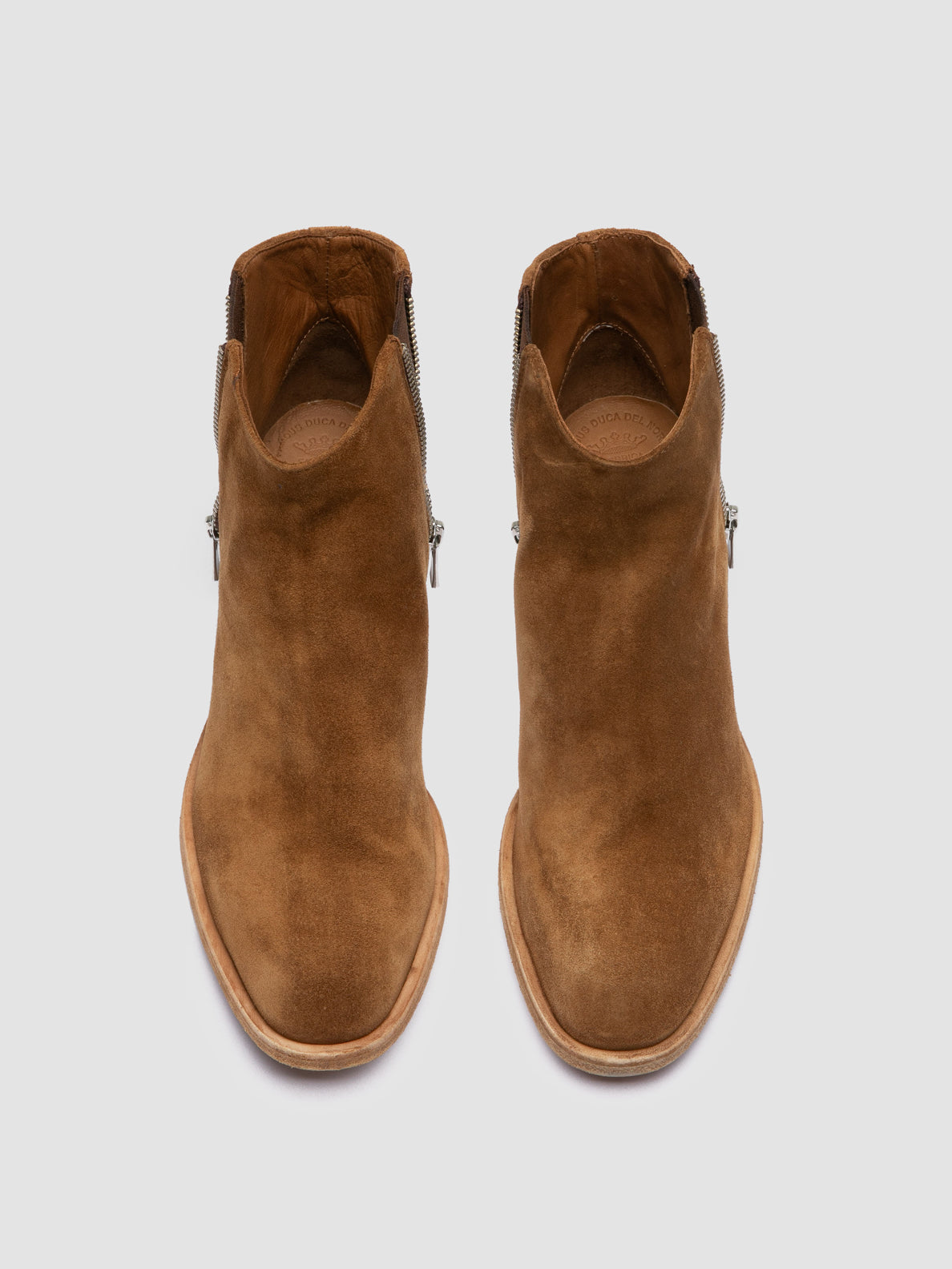 Handcrafted for understated sophistication, the Sydne 015 ankle boots feature a light brown suede upper with side zippers. Set on a leather sole, the slanted heel provides comfort and stability, perfect for effortless elegance on any occasion.