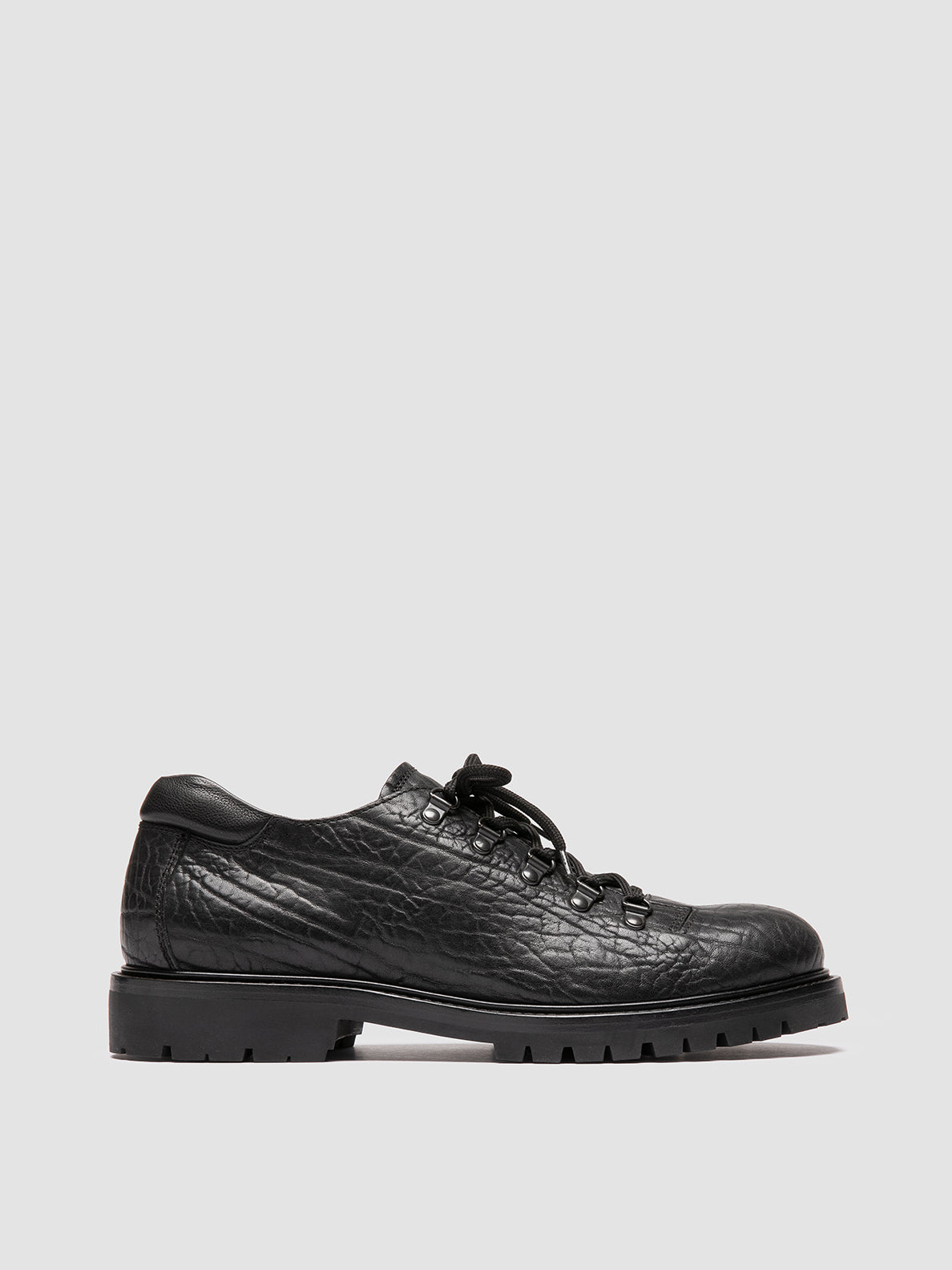 Handcrafted in black leather with a bold grain texture, the Boss 007 derbies blend everyday elegance with robust character. The clean lines of the upper meet a sturdy rubber sole, perfect for city wear with a touch of attitude.