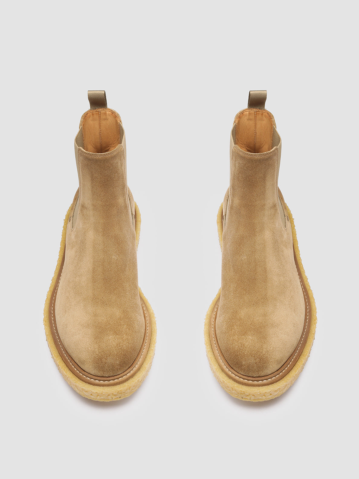 Our Bullet Chelsea boots reveal a modern and bold silhouette thanks to the thick crepe sole highlighted by double stitching. They are handcrafted from fine taupe suede and reveal a rounded toe classic stretch side panels and tone-on-tone grosgrain heel loop-tab.