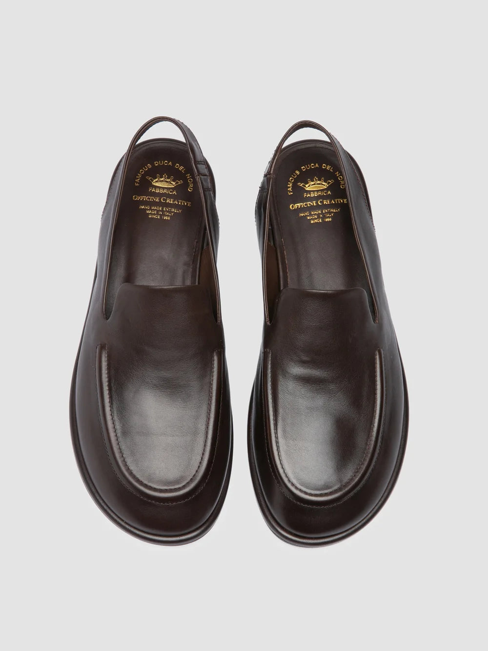 Handcrafted in Italy from soft brown leather, the Mienne 116 sandals feature a refined loafer-inspired silhouette reinterpreted in a slingback style. The open flexible rubber sole ensures comfort and ease.